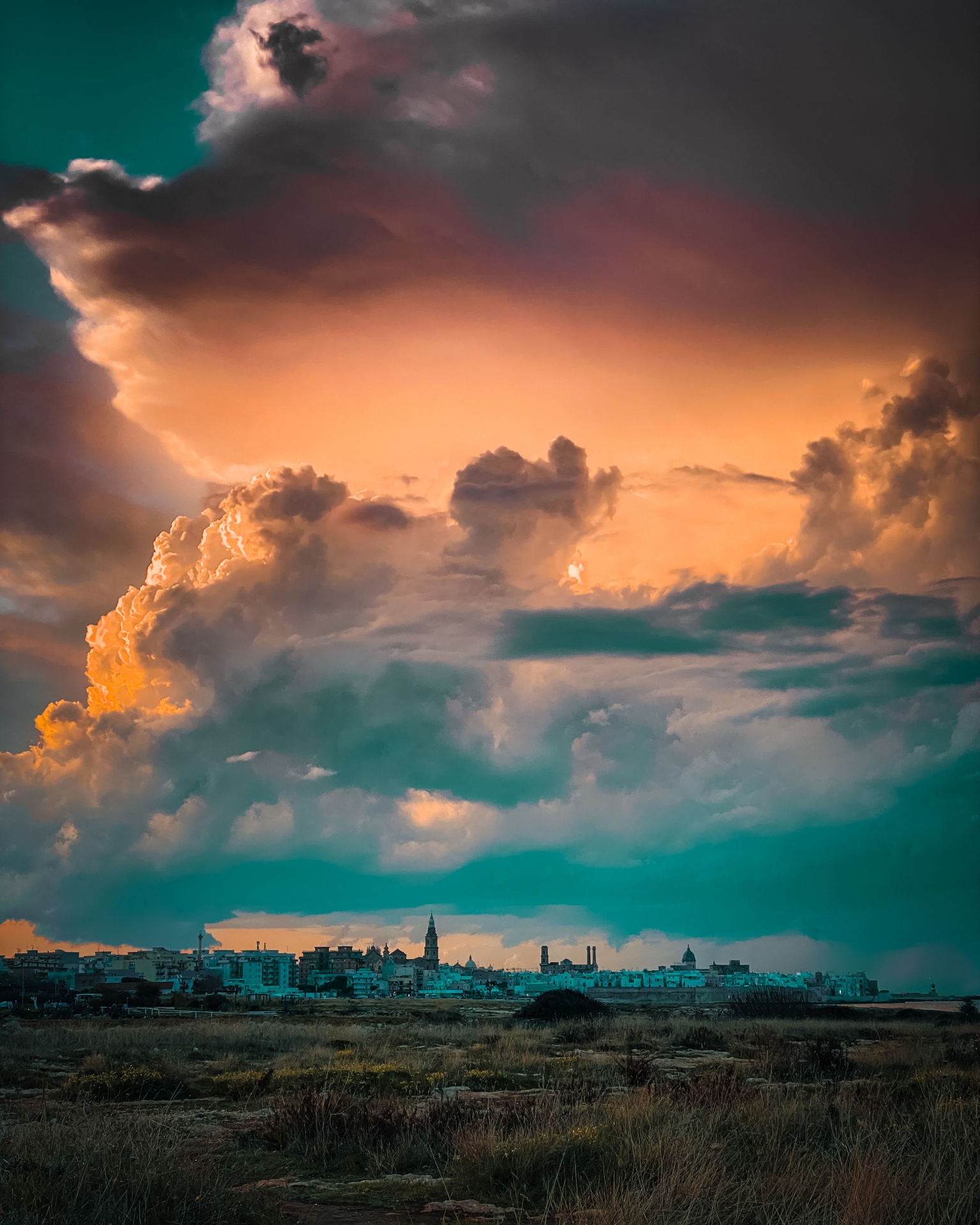 Dopo la tempesta, le nubi si sono addensate facendo spazio all'ultimo raggio di sole della giornata e trasformando il cielo in un dipinto saturato di colori. Un paesaggio fiabesco, diventato sui social una cartolina irresistibile: il sole appena calato ha tinto le nuvole colorandole di puro incanto.