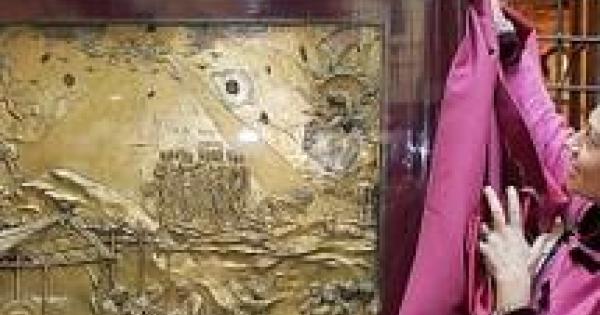 photo: Anna Mitrano unveiling the restored Noah panel from Ghiberti's Gates of Paradise