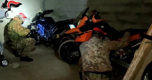 FOGGIA - Alcuni giorni fa una pattuglia della Stazione di Cerignola, nel corso di un servizio di perlustrazione delle vaste aree rurali e periferiche della città ofantina, in un casolare abbandonato sito in un uliveto di contrada Pavoni, aveva ritrovato tre motocicli di varie marche risultati rubati il giorno prima in provincia di Pescara ed un ciclomotore privo di targa e con telaio abraso.