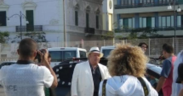 La banchina del «Bleu Salento» è stata scelta per il set d’esordio. Banfi è giunto in auto sbottando in un caratteristico «Ahoo!» all’indirizzo dell’autista che tardava ad aprirgli la portiera, poi è sceso in abito e panama bianchi. Le riprese sono andate avanti fino a sera, anche al largo della darsena, sul maxiyacht «Timeless » e vicino allo scalo d’alaggio del cantiere nautico adiacente il lungomare Marconi.