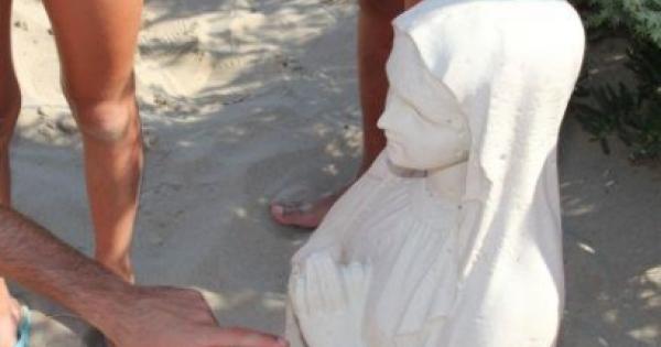 Ma poi, a non più di quindici metri dalla riva, nell’acqua profonda poco più di un metro e mezzo, ecco la sorpresa. «La statua era piantata nella sabbia, sotto il livello del mare, rivolta esattamente verso la spiaggia. Ed è incredibile come la corrente e le onde forti non l’abbiano fatta cadere. Ieri (domenica, ndc) – ricordano increduli i due ragazzi – in spiaggia c’era tantissima gente, ma nessuno si è accorto di niente. Stamattina ha piovuto, in seguito è venuto fuori il bel tempo e la gente ha cominciato a venire in spiaggia. Ed ecco il ritrovamento».