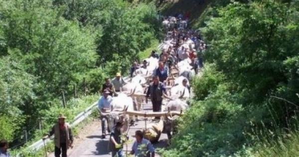 Il Cerro o Mascio, è trascinato da diverse pariglie di buoi, mentre la Cima è portata in paese con la chioma poggiata sul giogo di due giovani vacche. Ogni azione, corrispondente alle fasi di abbattimento dei due alberi e del loro trasporto in paese, è allietato dal suono di organetti e da copiose bevute di vino. Un tempo dal suono delle zampogne dette «suoni». Il trasporto processionale dei due alberi è, senza dubbio, la fase più spettacolare e coinvolgente, e consente a chiunque di aderire, con una buona dose di partecipazione, alle varie azioni e alle tensioni che il trasporto stesso genera.