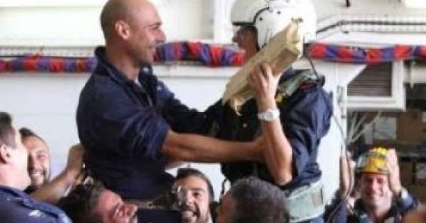 Uniti in matrimonio dal 22 agosto, i due sposini di Castellaneta non si vedevano da settimane. Il 26 novembre scorso, tra l’altro, era anche il compleanno di Carmine. Così, dopo il rifornimento di combustibile, dal momento che era necessario provvedere al trasferimento di viveri e materiali fra le due navi, al sottocapo è stata concessa la possibilità di volare dal suo giovane sposo per fargli di persona gli auguri di buon compleanno. Il comandante dell’Etna, il capitano di vascello Martino Baldari ha voluto riunire i due innamorati per qualche minuto prima che le navi riprendessero ognuna la sua missione.