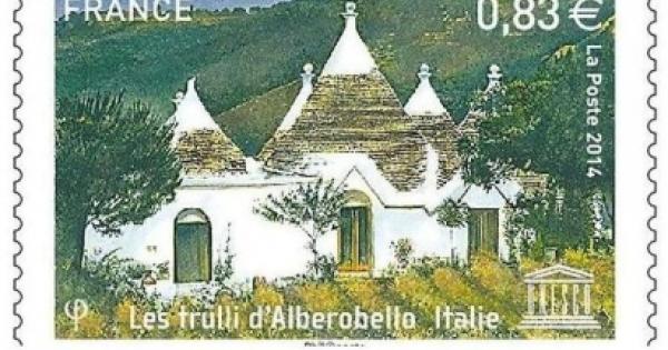 «Les trulli d’Alberobello Italie» è il francobollo disegnato dall’artista Jean Paul Veret Lemarinier, noto pittore figurativo, che riporta un agglomerato di queste caratteristiche case, e collocato sul mercato da La Poste. Si tratta di un francobollo dal valore di 83 centesimi di euro (tariffa per l’affrancatura di posta prioritaria per l’Europa). Stampato in offset, con tiratura di 500mila esemplari in foglietti da 50 ciascuno, ha dimensioni di 40x26 millimetri. L’unicità sta nel fatto che è la prima volta che i trulli ricevono un «omaggio dentellato» col riferimento specifico ed esclusivo per i «Trulli di Alberobello».