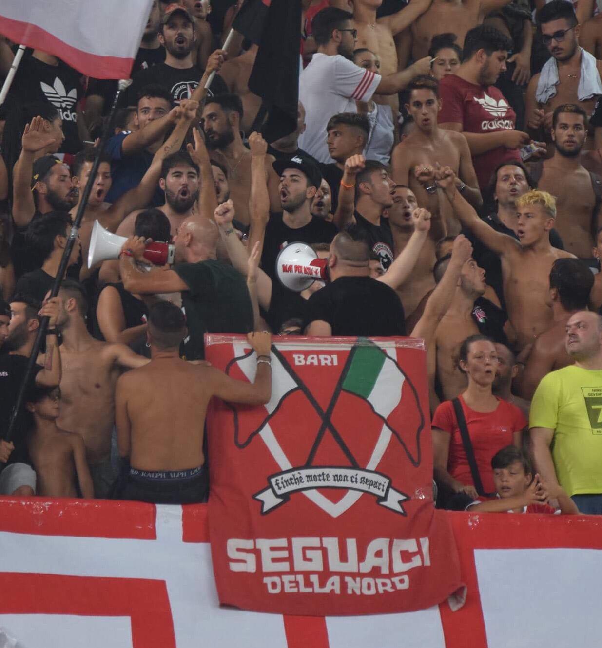 Mimmo Tarulli, conosciuto da tutti come “Mimmo il poeta”, è il punto di riferimento del cuore pulsante del San Nicola. Quella curva Nord che unisce, sprona, incita e, se necessario, contesta. Attorno a lui, alcuni dei fedelissimi del gruppo.