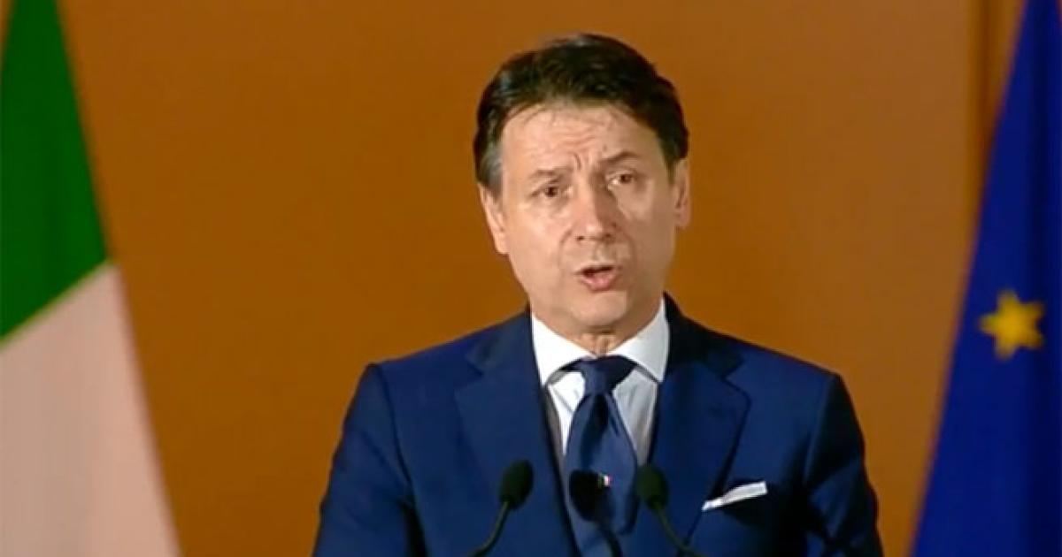 Il presidente del Consiglio, Giuseppe Conte in conferenza stampa, sabato 16 maggio 2020, sul nuovo decreto 18 maggio anti Covid-19. Tornano anche i giornalisti a Palazzo Chigi, sono stati individuati spazi per garantire la sicurezza.