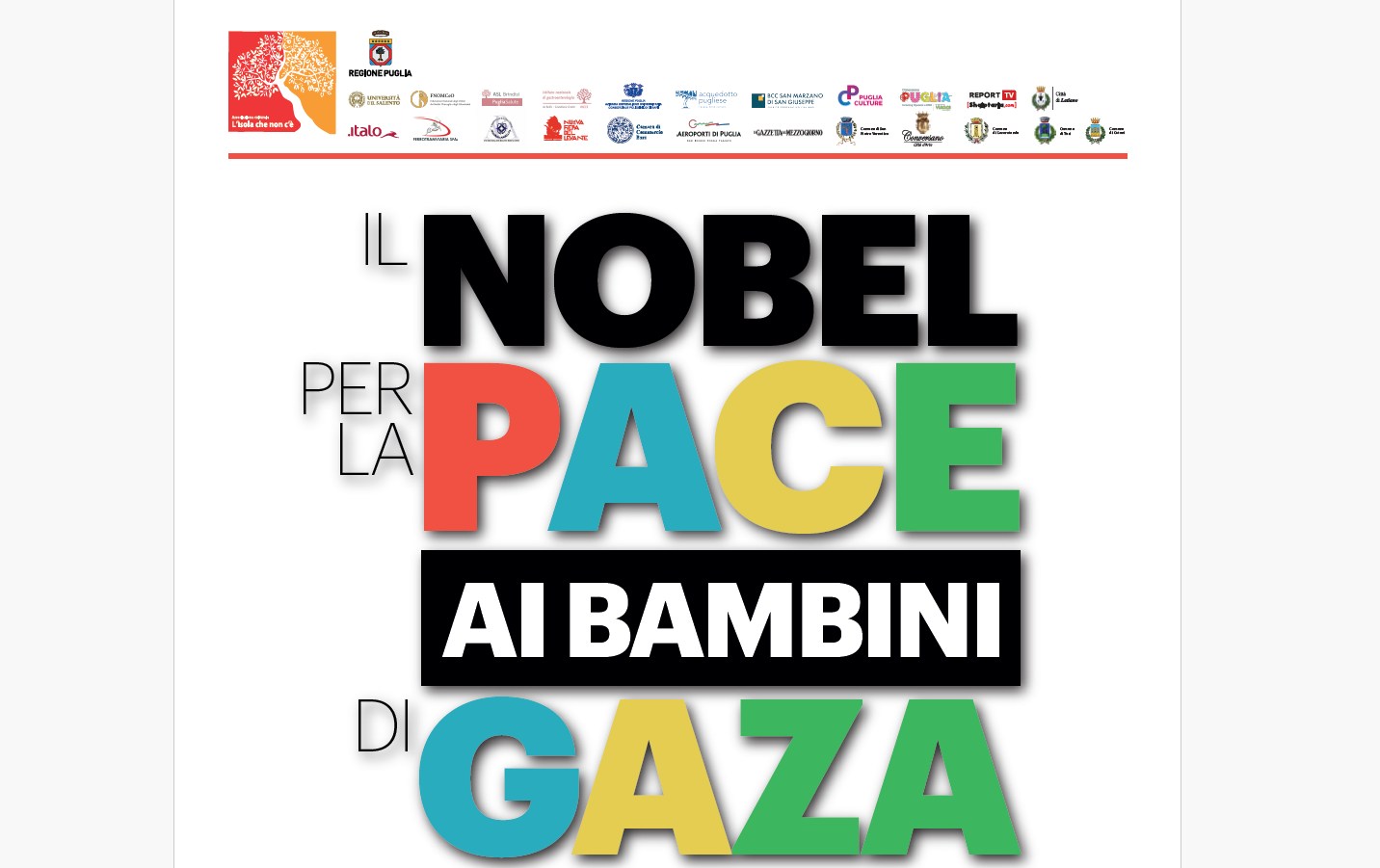 L’assegnazione del Nobel ai bambini di Gaza – si sottolinea – rappresenterebbe un messaggio universale: nessuna guerra può cancellare il diritto di un bambino alla vita e alla dignità. L’iniziativa ha già raccolto centinaia di adesioni, tra cui quelle di oltre 320 personalità del mondo accademico, scientifico, ecclesiale, culturale, sanitario e politico. Hanno aderito, inoltre, i Senati Accademici dell’Università di Bari e dell’Università del Salento.