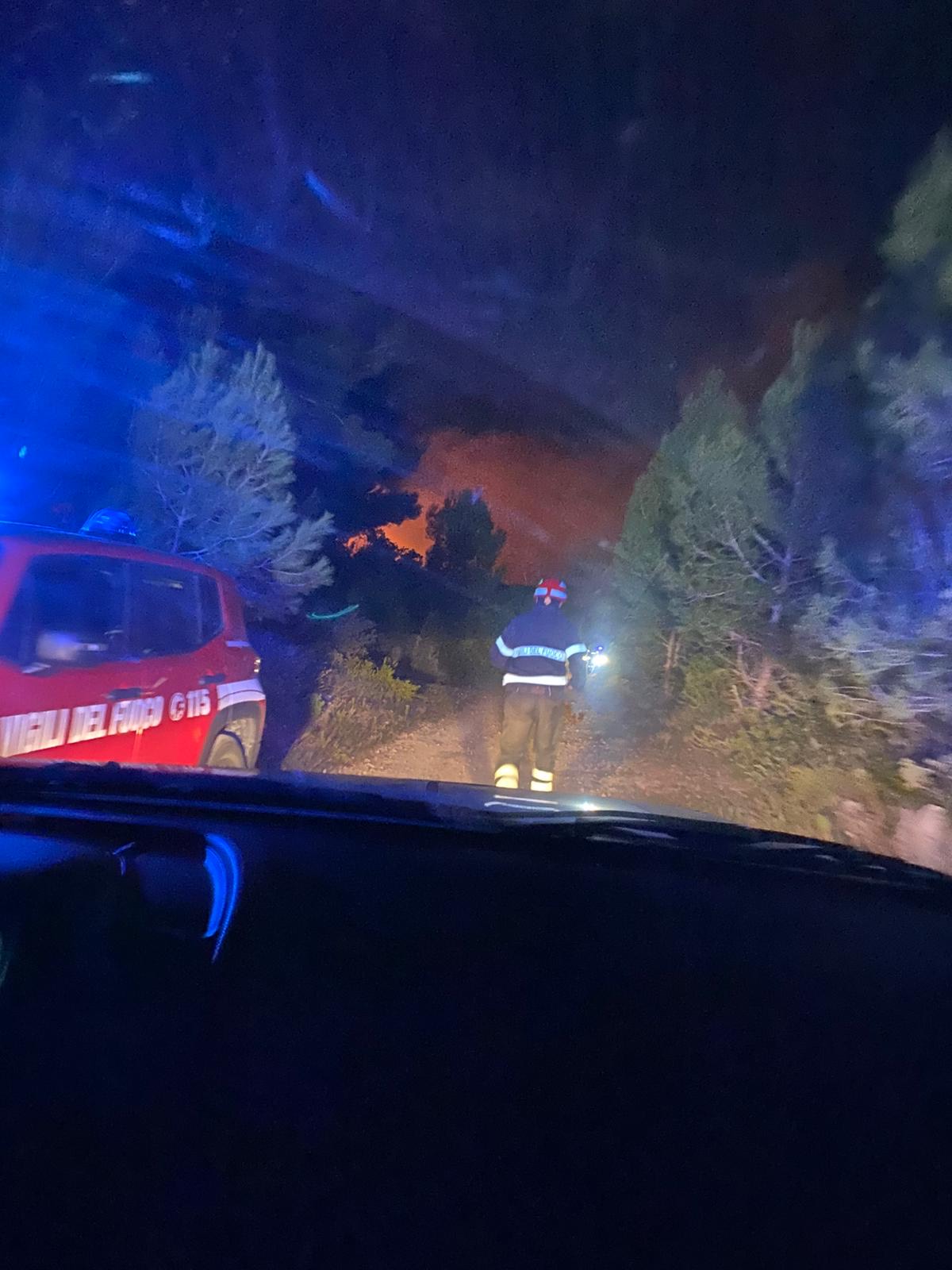 I Vigili del Fuoco sono al lavoro per cercare di domare il rogo, visibile anche a parecchi chilometri di distanza.