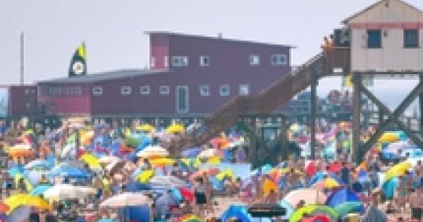 epaselect epa05438860 A beach at the German seaside district of Sankt Peter-Ording is packed with beach-goers in Germany, 24 July 2016. EPA/AXEL HEIMKEN
