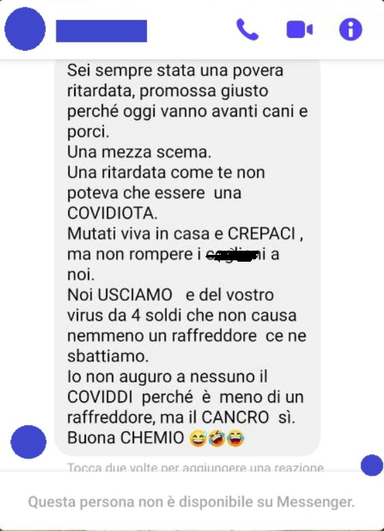 MELFI - Due professori negazionisti, e questo sarebbe il meno. Bacheche social invase da messaggi che parlano di dittatura sanitaria e baristi che si sarebbero trasformati in Ss ma ancora non basta. Ci sono anche le minacce a chi la pensa diversamente del tipo “conosco gente che ti viene a trovare ovunque tu stia”, ma non è tutto. Perché l’accusa che gli studenti del Liceo Scientifico Federico II di Svevia muovono a due docenti tra loro coniugati (ma uno dei due sarebbe in aspettativa) comprende anche il fatto che si sarebbero rivolti ad alcuni studenti che mostravano il proprio disaccordo che chiamandoli “ritardati” e addirittura augurandogli il cancro. È destinata ad arrivare sul tavolo della Ministra Lucia Azzolina la segnalazione fatta dall’Unione degli Studenti di Melfi che spiega come «dobbiamo purtroppo prendere atto che anche in una realtà piccola come quella di Melfi, si è verificato un evento indegno che però sicuramente merita l’attenzione di tutte le istituzioni competenti ». Un esposto arricchito da un fascicolo di screenshot che ritraggono i vari messaggi social dei due e anche messaggi mandati in privato (accanto ne pubblichiamo uno) tutti all’impronta della negazione della pandemia, etichettando quanti si attengono alle disposizioni come “pandementi” o “covidioti” e indicando nella mascherina un «bavaglio ». E a sfogliare i profili social dei due prof effettivamente le affermazioni di questo tipo sono molteplici. «Non riteniamo questi individui professori - scrivono così gli studenti -, perché non meritano di essere definiti tali in quanto i professori non sono questo, sono tutt’altro. La domanda è: può un docente, negazionista, che incita i propri followers e studenti a non indossare la mascherina, essere tale? Non saremo noi a deciderlo, ma il Ministero dell’Istruzione e il competente dell’Ufficio Scolastico Regionale cui abbiamo inviato alcuni post dei docenti. A tutti coloro che leggono questo comunicato, vogliamo dire che il Liceo di Melfi ha da sempre preparato e formato in maniera eccelsa tutti i suoi studenti e continuerà a farlo, nonostante questi incresciosi eventi, perché siamo sicuri che i docenti tutti, degni di essere definiti tali, la penseranno come noi».