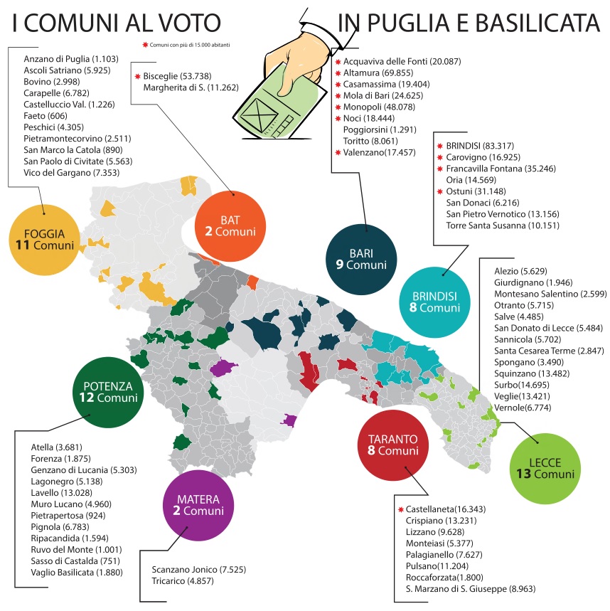 Ecco l'elenco provincia per provincia di tutte le liste dei candidati pugliesi e lucani.