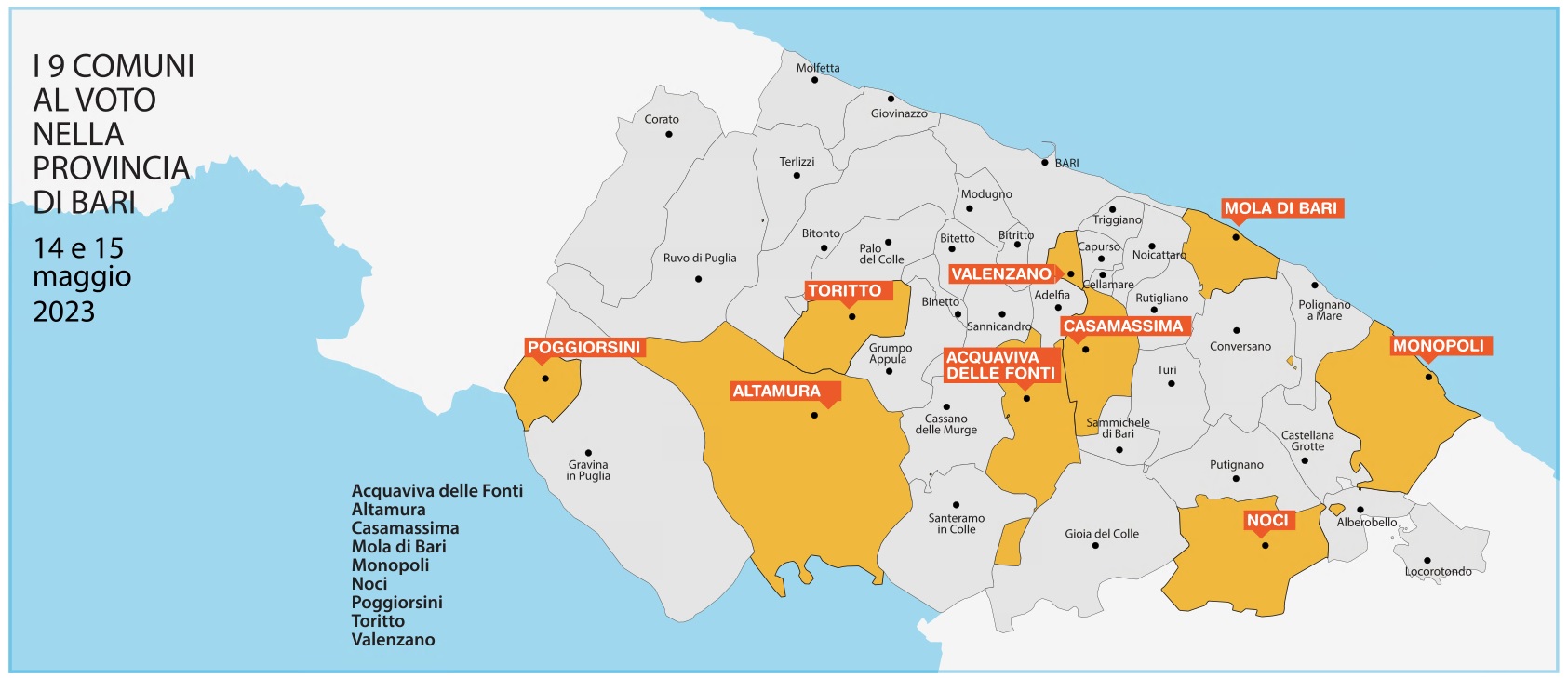 Le elezioni comunali 2023 si terranno il 14 e 15 maggio in 51 comuni della regione Puglia e in 14 comuni della regione Basilicata. Il turno di ballottaggio si terrà il 28 e 29 maggio. Nel caso non ci siano comuni con popolazione maggiore di 15.000 abitanti, non sono previsti turni di ballottaggio, salvo il caso di parità di voti dei candidati sindaco più votati.