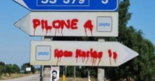 Come si può ben vedere dall’immagine, l’usura del tempo, l’umidità (o qualunque altro fattore) ha portato alla cancellazione delle indicazioni originariamente poste sui due cartelli stradali che indicano il percorso da seguire per le citate località balneari. Ebbene, qualche “volenteroso” ha pensato bene di sopperire alla carenza materializzatasi a distanza di tempo e, armato di pennarello rosso, ha ricalcato alla... meno peggio le lettere ormai quasi illeggibili, facendo così un favore agli automobilisti che, ignari della direzione da prendere, avrebbe avuto non poche difficoltà a scegliere il tragitto giusto. Le indicazioni, dopo l’approssimativo intervento, bene o male sono ora chiare. Certo, però, che quella “sfumatura” di colore rosso (che discende da quasi tutte le lettere ricalcate) mette quasi i brividi e sembra non far presagire... nulla di buono, ricordando, sia pure, vagamente quelle utilizzate per i titoli di alcune pellicole horror. [p. potì]