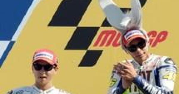 Per festeggiare la vittoria Rossi e' salito sul podio del Gp di San Marino con in testa, oltre al cappellino del vincitore, anche due lunghe orecchie da asino di peluche.