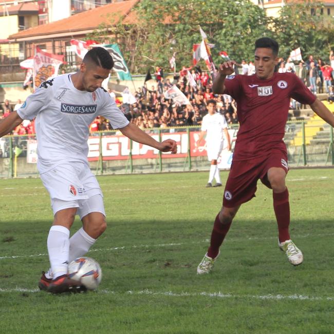 31' Gol dell'Acireale: Leotta sfugge a Nannini che indovina il diagonale vincente. Acireale-Bari 1-1
