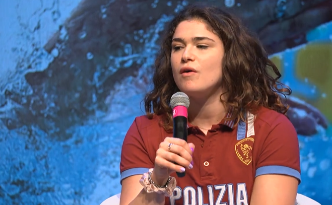 «Le rinunce in questo sport sono tante, un’uscita con gli amici o una cena fuori, però sinceramente non me ne pento, rifarei tutto». Sono queste le parole di Benedetta Pilato, campionessa di nuoto intervenuta nel corso del Festival dello Sport di Trento (sotto in foto). «Con calma e senza pressioni i risultati arrivano sempre, al di là delle rinunce che si fanno. A quest’età è ancora più importante sognare, oltre che puntare sempre a migliorarsi anche quando hai già raggiunto dei risultati. Lasciare Taranto potrebbe essere più di un’idea. Mi sono resa conto di avere molte più possibilità agonistiche da un’altra parte, anche perché a Taranto non ci sono le strutture per praticare sport ad alto livello» ha concluso la campionessa mondiale ed europea in carica dei cento metri rana, oltre che primatista mondiale sui 50 metri col tempo di 29 secondi e 30 centesimi. Una dichiarazione che dimostra come l'enfant prodige del nuoto italiano, a soli 17 anni, abbia le idee chiare.