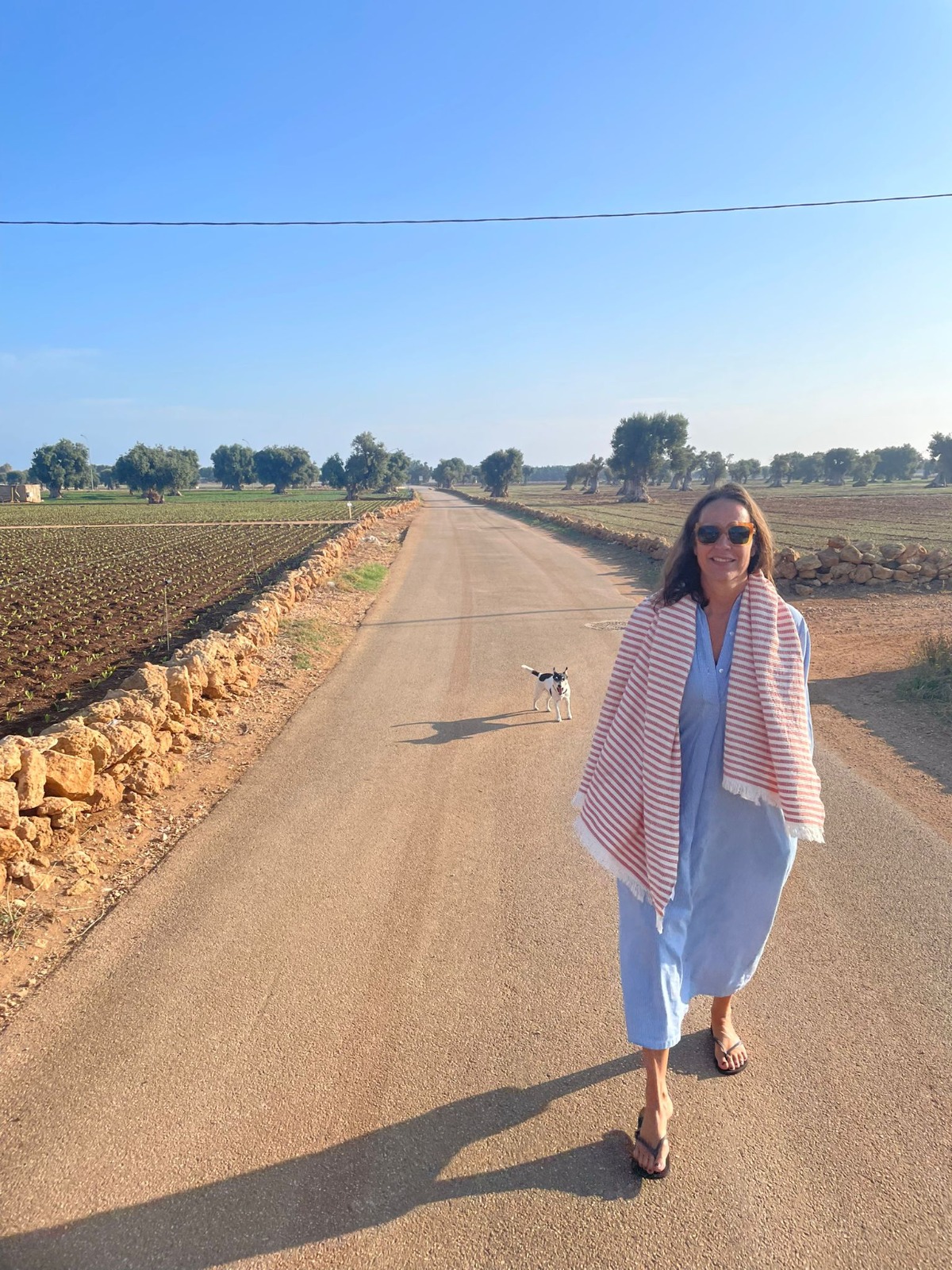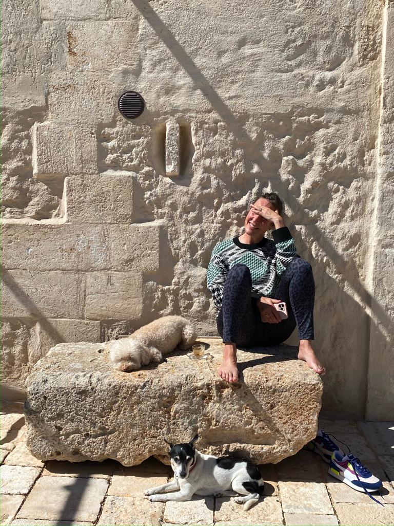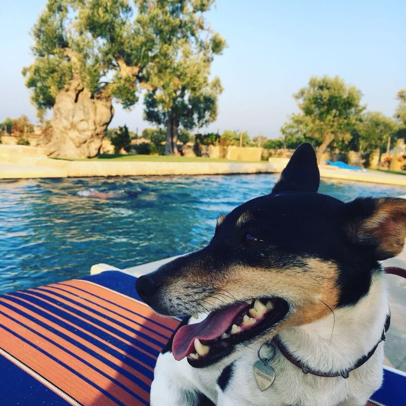 Minnie si è molto affezionata a me e mi segue ovunque. Ma se non ci sono io, si ritrova semplicemente un altro compagno da seguire. Adoro il fatto che sia flessibile in questo senso, davvero indipendente. In Masseria sa esattamente cosa può e cosa non può fare. Ad esempio, non le permetto mai di dormire nel mio letto e lei lo rispetta. Tuttavia deve aver “imparato” che alcune persone lo permettono e altre no. Quindi fa davvero uno sforzo per trovare quelli tra gli ospiti che glielo permettono.