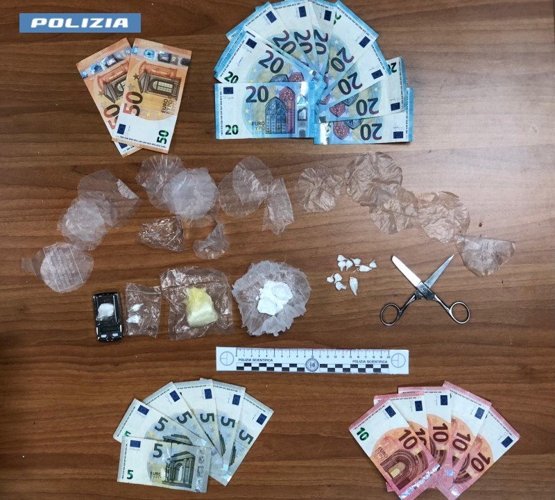 Quando i Falchi hanno deciso di intervenire con una perquisizione in casa del giovane, sul piano della cucina hanno recuperato circa 25 grammi di cocaina parte ancora in pietra, tutto il necessario per il suo confezionamento e quasi 400 euro in banconote di piccolo taglio che erano all’interno di un bicchiere di plastica appoggiato su un mobile dell’ingresso.