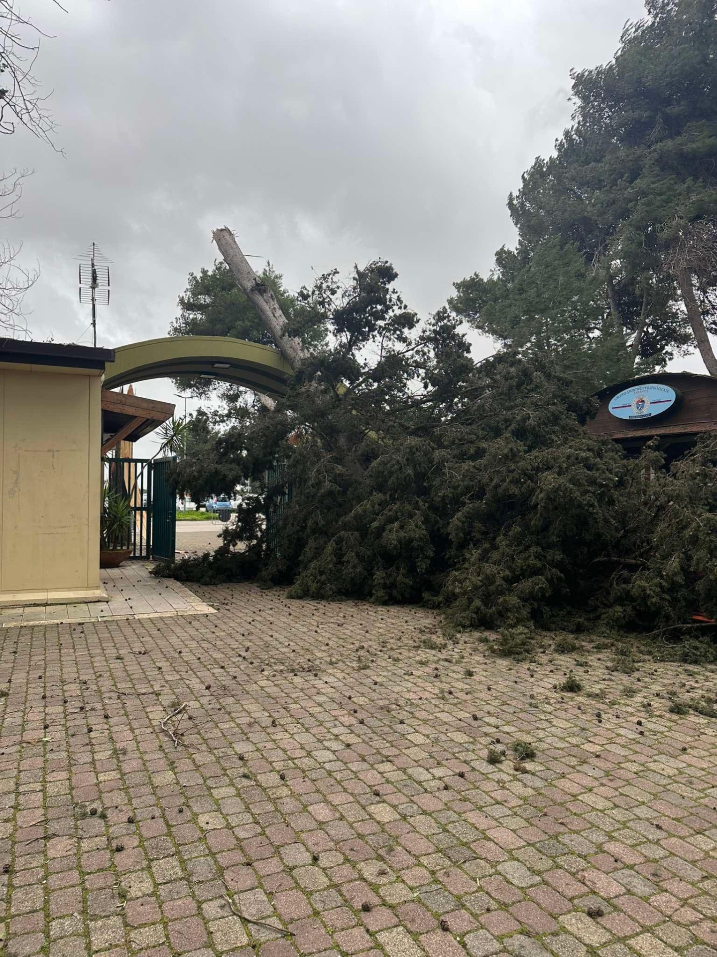 Il sindaco di Taranto ha disposto la chiusura di parchi, giardini, aree verdi e cimiteri. Danni al parco Cimino, dove un albero si è spezzato ed è caduto nei pressi dell'ingresso.