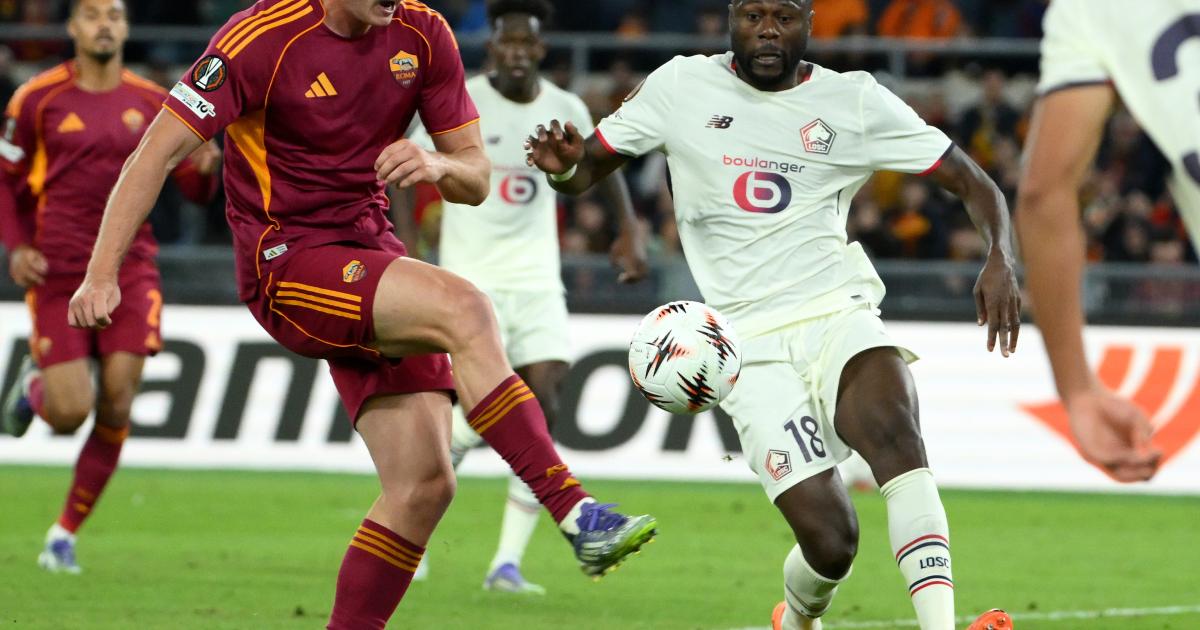 (ANSA) - ROMA, 02 OTT - Roma-Lille 0-1 nella seconda giornata di Europa League. Giallorossi subito in svantaggio all'Olimpico: errore di Tsimikas e rete di Haraldsson. Sahraoui sfiora il raddoppio, El Aynaoui a centimetri dal pareggio. Nella ripresa Svilar salva su Giroud, Ferguson pericoloso di testa. Nel finale la Roma spreca tre rigori: ripetuti i primi due tentativi sbagliati da Dovbyk, ma Ozer para anche il terzo penalty di Soulé. (ANSA).