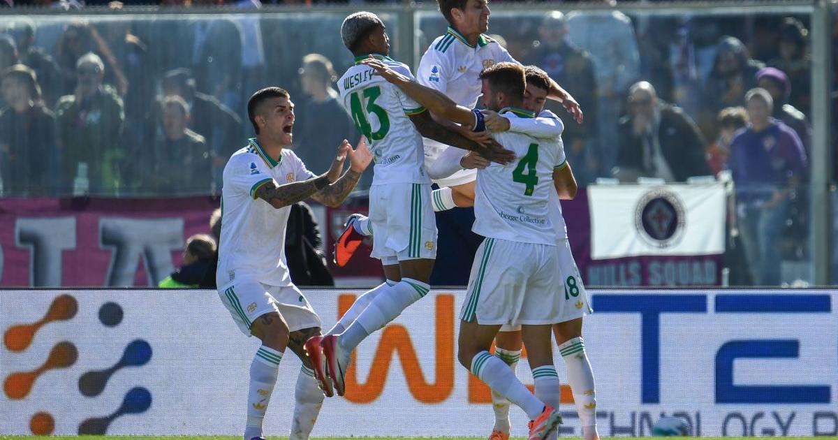 FIRENZE (ITALPRESS) – La Roma si conferma in testa alla classifica della Serie A, alla vigilia della pausa del le gare delle Nazionali, espugnando il Franchi di Firenze grazie alle reti di Soulè e Cristante che ribaltano il gol iniziale di Kean. Vincono 2-1 gli uomini di Gasperini con una prova non perfetta; ma tanto basta per avere la meglio su una Fiorentina davvero in crisi nera, che non si smuove dai tre punti maturati in sei giornate di campionato, rimanendo sempre più invischiata nella lotta salvezza. La partita è divertente e incerta fin dal fischio di inizio con i viola a provare a fare gioco e ad attuare almeno nei primi 20′ un pressing alto, e con Kean che fa da boa e punto di riferimento. Di contro la Roma sembra timorosa e incerta, con molti errori di disimpegno da segnalare. Non è un caso che poco prima del quarto d’ora di gioco proprio Kean sfrutti uno scontro fortuito Mancini-Cristante a centrocampo, e si involi verso la porta giallorossa battendo Svilar. Gli ospiti però non accusano il colpo e ci mettono poco a ribaltare il risultato. Prima Soulè con uno stupendo Mancini brucia De Gea, poi Cristante anticipa Mandragora su calcio d’angolo battuto dall’argentino numero 18 romanista, e fa due a uno per i suoi. La Roma potrebbe fare tris al 36′ se Dovbyk arrivasse prima su un cross di Wesley, mentre Kean sfiora la doppietta 2′ più tardi con un sinistro che centra il palo e poi esce. Nell’intervallo Gudmundsson rimane negli spogliatoi, al suo posto il neo azzurro Piccoli, mentre poco prima dell’ora di gioco Gasperini capisce di essere sottoposto al pressing viola e inserisce contemporaneamente Pellegrini e Dybala, quest’ultimo nell’anomala posizione di centravanti al posto di uno spento Dovbyk. I viola al 73′ centrano anche il loro secondo legno, con Piccoli che prende una traversa piena. Il tutto anticipa la mossa della disperazione di Pioli che inserisce anche Dzeko per Mandragora con tre punti in campo in contemporanea per i gigliati per l’assalto finale. L’affollamento offensivo però produce poco se non un cross da destra su cui Gosens arriva tardi sul secondo palo. Anzi l’ultima chance c’è la Dybala al 90′ ma De Gea è reattivo. La sua parata però non basta a evitare la sconfitta viola e i tanti fischi finali del Franchi. – foto Ipa Agency – (ITALPRESS).