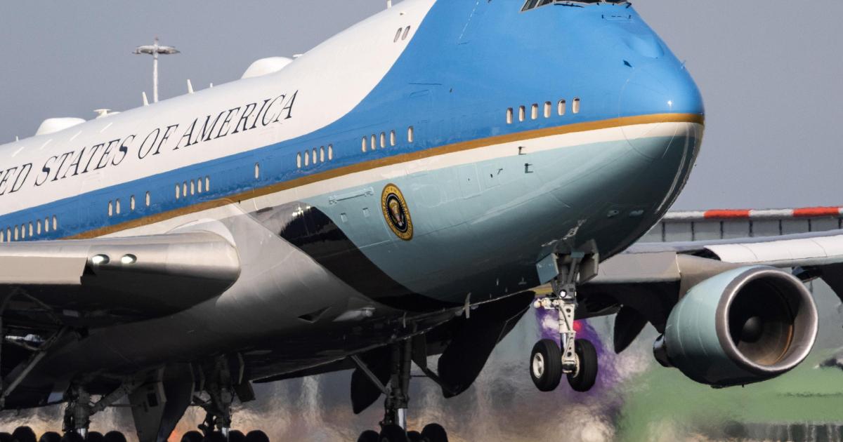 (ANSA) - ROMA, 13 OTT - L'Air Force One con a bordo il presidente degli Stati Uniti Donald Trump è atterrato all'aeroporto Ben Gurion di Tel Aviv, in Israele. (ANSA).