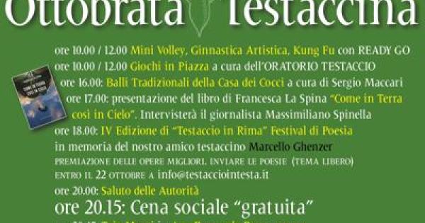 Dal 2019, le associazioni testaccine hanno riportato in vita questa tradizione con una giornata interamente dedicata al quartiere e alla sua memoria popolare. Oggi l’'Ottobrata Testaccina' si presenta con un respiro più ampio, grazie al sostegno istituzionale e a un programma ancora più ricco. Piazza Testaccio sarà il cuore pulsante dell’evento, animata da giochi di strada, musica dal vivo, letture poetiche e una grande cena sociale aperta a tutti, nel segno dell’inclusione e della condivisione.