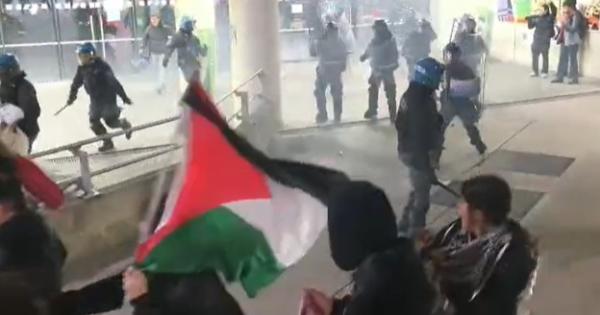 (ANSA) - TORINO, 30 OTT - Momenti di tensione a Torino tra proPal e forze dell'ordine. Dopo aver percorso in corteo le vie del centro, in piazza XVIII Dicembre i manifestanti hanno tentato di entrare nella stazione di Porta Susa, presidiata dalle forze dell'ordine, che hanno risposto con una carica di alleggerimento al lancio di sassi e bottiglie. Dopo alcuni minuti la situazione è tornata calma; ora i manifestanti stanno percorrendo corso Bolzano costeggiando la stazione. (ANSA).
