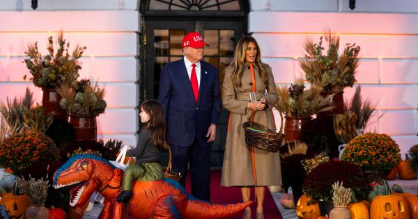 (ANSA) - NEW YORK, 30 OTT - "Dolcetto o scherzetto". Donald Trump e la First Lady Melania escono dalla Casa Bianca sulle note di Thriller per partecipare a un evento per Halloween, al quale partecipano anche la famiglie dei funzionari dell'amministrazione, inclusa la portavoce Karoline Leavitt con marito e il figlio e il consigliere Stephen Miller. (ANSA).