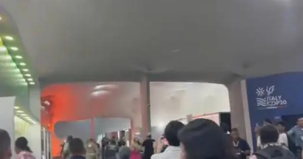 BELEM (BRASILE) (ITALPRESS) – Incendio tra i padiglioni della Cop30 a Belem, in Brasile. Tutti i presenti sono stati evacuati. Non è ancora chiara la natura del rogo, che si è sviluppato nella zona B, vicinissima al Padiglione Italia. Sul posto i vigili del fuoco per spegnere le fiamme. – Foto Italpress – (ITALPRESS).