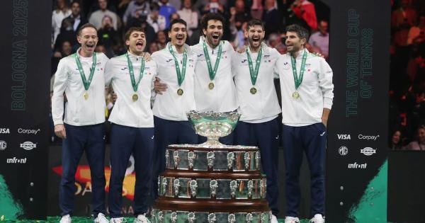 BOLOGNA (ITALPRESS) – L’Italia vince la quarta Coppa Davis della sua storia, la terza consecutiva. Sul cemento indoor di Bologna è Flavio Cobolli a regalare la prima Insalatiera in casa agli azzurri, che si impongono in finale sulla Spagna col punteggio di 2-0. Dopo il successo di Matteo Berrettini per 6-3 6-4 su Pablo Carreno-Busta nel primo singolare, Cobolli chiude la contesa battendo Jaume Munar per 1-6 7-6(5) 7-5. L’Italia diventa così la prima nazione a trionfare per tre anni di fila dal 1971, dopo l’eliminazione del Challenge Round, ovvero la regola per cui i campioni in carica giocavano solo la finale l’anno successivo. “Questo era il mio sogno, siamo una squadra molto unita. Sono fiero di tutti noi e di questa squadra fa parte anche questo pubblico fantastico. Si ripete da tre giorni il giorno più bello della mia vita” le parole di Cobolli dopo la vittoria contro Munar che ha regalato la Coppa Davis all’Italia. – foto Ipa Agency – (ITALPRESS).