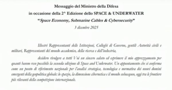 Crosetto ha richiamato le prospettive economiche del settore, con “un mercato globale che raggiungerà i 300 miliardi di euro entro il 2030”, e ha rimarcato come la competizione si stia spostando verso gli abissi e l’orbita: “È negli abissi che si giocheranno nuove sfide tecnologiche, industriali ed economiche”. Sul fronte nazionale, ha ricordato che l’Italia “ha istituito l’Agenzia per la Sicurezza Subacquea e definito oltre 8 miliardi di euro di investimenti al 2039”, mentre la filiera industriale “ha registrato una crescita del 65% in tre anni”. Ampio il riferimento al dominio spaziale: “Le infrastrutture orbitali rappresentano la spina dorsale di servizi essenziali e sono obiettivi sensibili a minacce ibride sempre più sofisticate”, ha dichiarato, indicando la necessità di rafforzare autonomia e capacità europee.