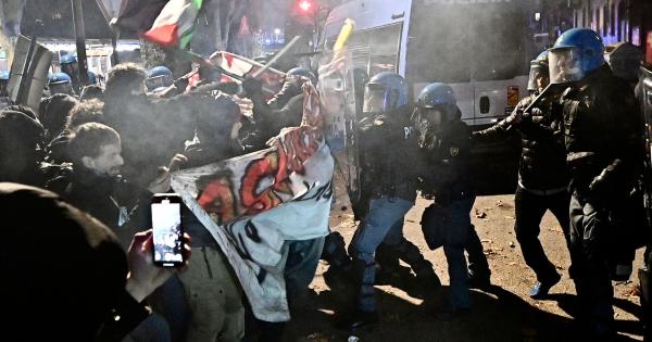 Forze dell'ordine li respingono con idranti e lacrimogeni