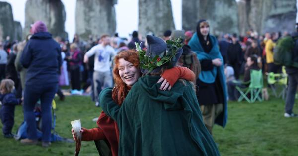 Il raduno all'alba. Molti abbigliati con costumi tradizionali druidi