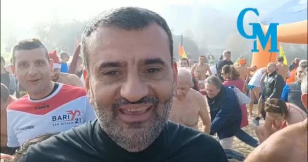 BARI - Tra bande e musica arriva come da tradizione il tuffo di Capodanno a Bari, e in prima fila c'è il sindaco Antonio Decaro, il primo a incoraggiare i tuffatori.
