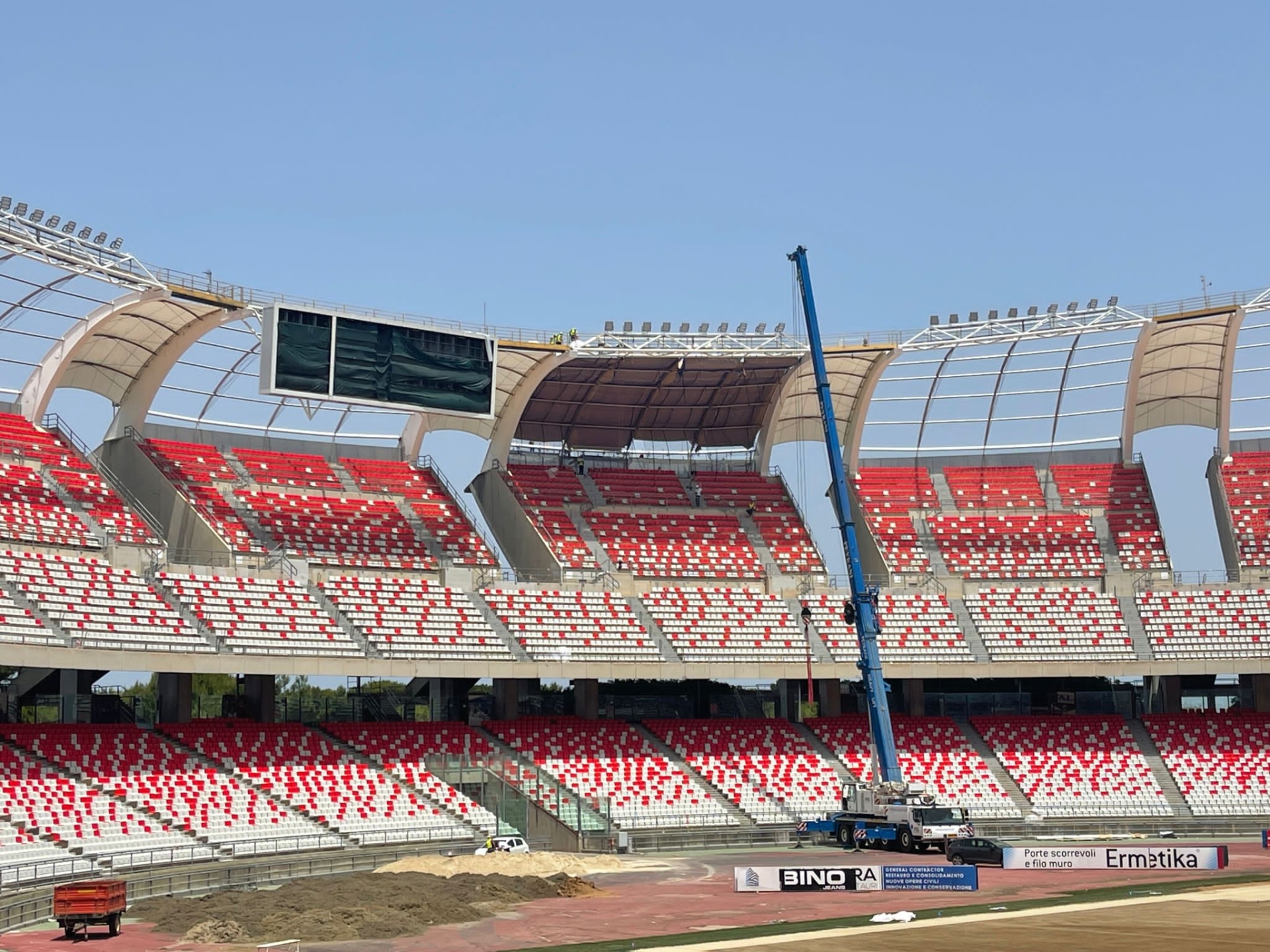 BARI - È stato installato questa mattina il primo dei 26 petali che costituiscono la copertura dello stadio San Nicola di Bari, dalla superficie di circa 300 metri quadrati. L’intervento è cominciato dalla curva Nord e proseguirà nelle prossime settimane per posizionare i restanti 25 petali su una superficie totale di circa diecimila metri quadri, pari a una volta e mezzo il campo da gioco.