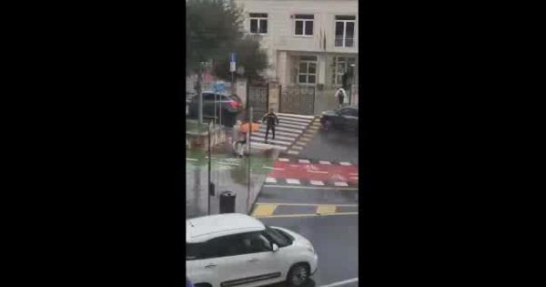 Strade come fiumi, ma grazie alla generosità dell'agente di polizia locale nessuno si è fatto male: le immagini commuovono i social