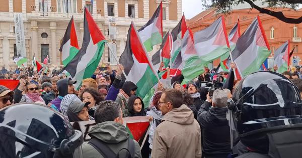Sono moltissime le bandiere palestinesi issate, così come quelle dei sindacati e delle organizzazioni degli studenti universitari. Secondo gli organizzatori al momento ci sono circa quattromila persone.