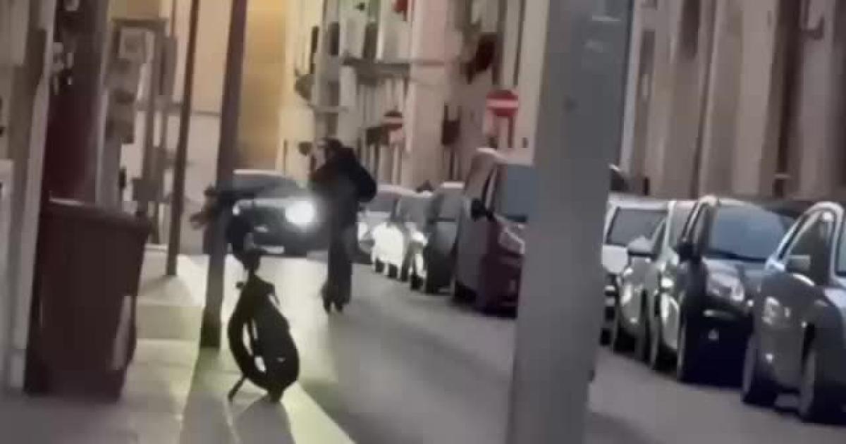 Nel secondo video, sempre registrato nella stessa via, si notano due persone vestite di nero a bordo di un monopattino. Uno dei due, improvvisamente, alza il braccio e spara un colpo verso l’alto, proprio mentre davanti a loro passa un’auto. Il filmato mostra chiaramente la fiammata uscire dalla canna.