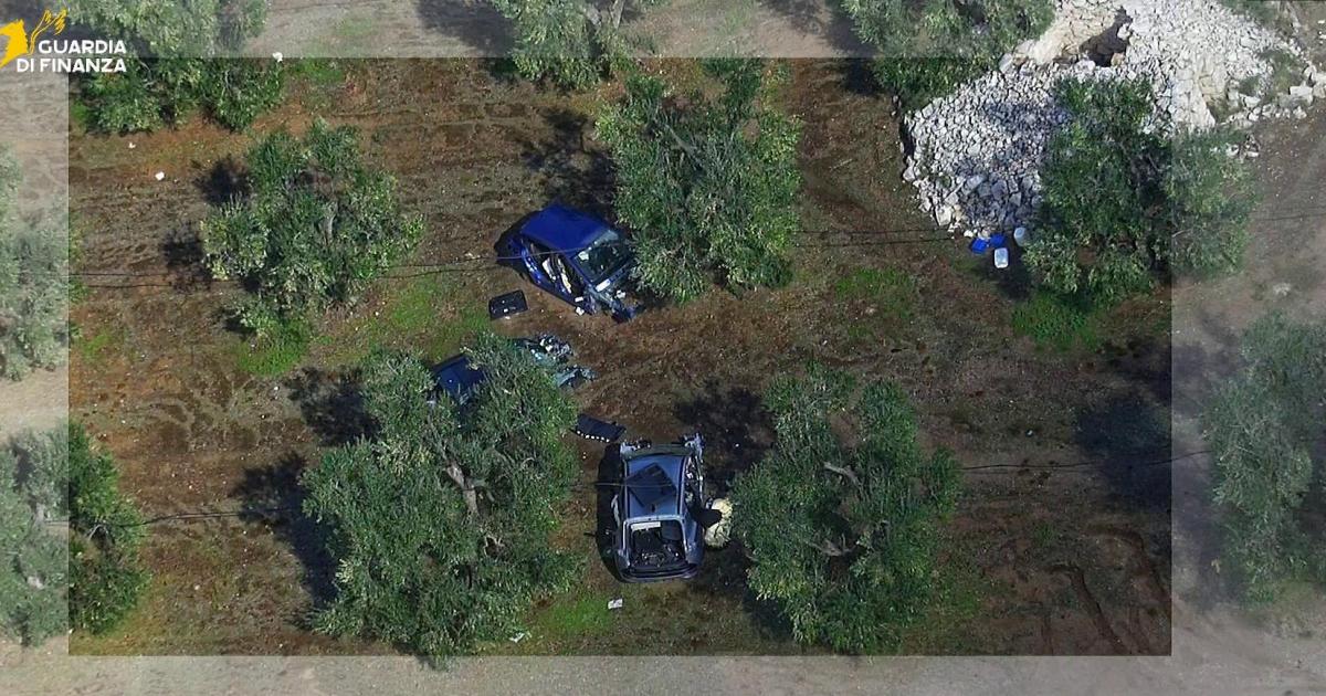 Quattordici auto rubate e cannibalizzate sono state ritrovate nascoste nelle campagne tra Trani, Corato, Andria e Canosa di Puglia. Le auto sono state localizzate grazie alle missioni di ricognizione aerea della Guardia di Finanza: undici veicoli sono stati rinvenuti completamente smontati e privi di targhe, mentre altri tre presentavano ancora la targa ma erano già parzialmente cannibalizzati, con diversi componenti asportati. Tutti i mezzi individuati e segnalati dall’elicottero sono stati recuperati. Restituiti ai legittimi proprietari i veicoli intatti ed identificati con le targhe. Le Fiamme Gialle, in coordinamento con le autorità locali competenti, hanno già avviato le procedure di segnalazione e bonifica ambientale.