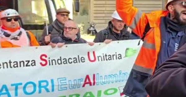 Roma, Eurallumina: i lavoratori giunti dalla Sardegna davanti al Mimit Roma, Eurallumina: i lavoratori giunti dalla Sardegna davanti al Mimit