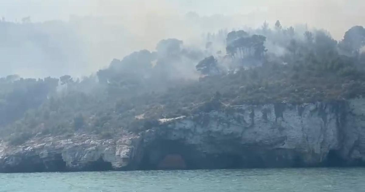 Il rogo si è sviluppato in una zona impervia e spinto dal forte vento avanza verso la struttura ricettiva. I turisti che non hanno l'automobile vengono trasportati a bordo di barche via mare ed ospitati in una palestra messa a disposizione dal comune di Vieste.