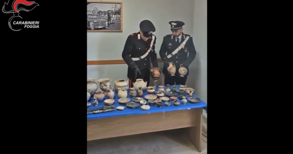 I militari, con l’ausilio di personale della Soprintendenza archeologica, belle arti e paesaggio della provincia di Foggia, hanno effettuato ulteriori accertamenti che hanno certificato l'autenticità e l’interesse archeologico della maggior parte dei reperti, denunciando a piede libero il proprietario per ricettazione di beni culturali. Gli elementi indiziari raccolti - dicono i militari dell’arma - hanno consentito di sostenere l’ipotesi di una derivazione illecita dei manufatti, visto che l’uomo è risultato privo di autorizzazione al possesso.