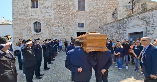 La bara portata a spalla attraversa il picchetto d’onore delle forze dell’ordine. In prima fila ci sono i colleghi carabinieri del brigadiere Carlo Legrottaglie, ucciso ieri giovedì 12 giugno mentre inseguiva due rapinatori nelle campagne di Francavilla Fontana. Ma ci sono anche poliziotti, finanzieri e tanta gente comune all’esterno della chiesa dei Cappuccini di Ostuni dove è stata allestita la camera ardente per il sottufficiale ucciso a 59 anni, a pochi giorni dal traguardo della pensione.
