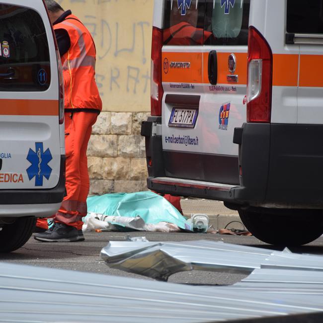 BARI - Ecco alcune delle immagini registrate dai residenti e pubblicate sui social, che documentano la tragedia avvenuta a Bari in Largo Crispi: una donna di 53 anni è morta schiacciata dalle lamiere cadute in strada per colpa del vento forte.