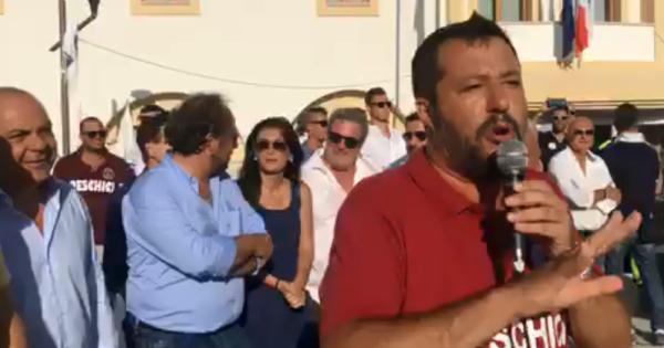 Arriva nell'affollata piazza di Peschici, dopo un giro di selfie e abbracci ed esordisce citando «il solito gruppo di sinistra», riferendosi a un gruppo di contestatori. Matteo Salvini, vicepremier e leader della Lega - a poco meno di 24 ore dalla rottura con il Governo gialloverde, inizia il tour in Puglia dopo una lunga passeggiata in auto per giungere nella città garganica puntando l'indice contro la criticità dei trasporti in Puglia inaugurando così la corsa anche verso le regionali del 2020.
