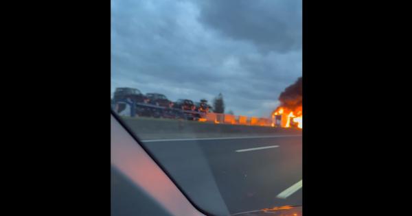 Incidente fra tre camion sull'Autostrada Adriatica A14 lungo il tratto fra Forlì e Faenza. Nel video uno dei mezzi incendiato