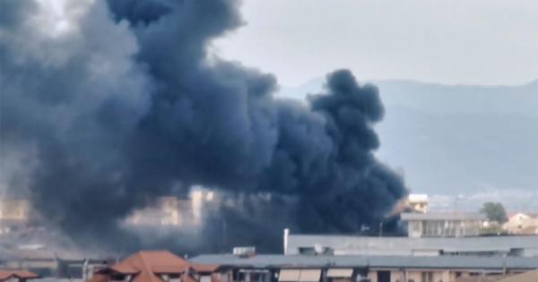 Fiamme alte e fumo nero tra Giugliano in Campania e Villaricca in provincia di Napoli a causa di un incendio.