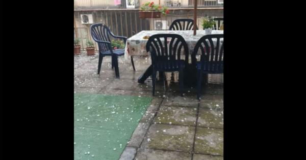 Grandine e temporale nel tardo pomeriggio sul centro abitato di Saluzzo, in provincia di Cuneo in Piemonte: danni ad auto e agricoltura.