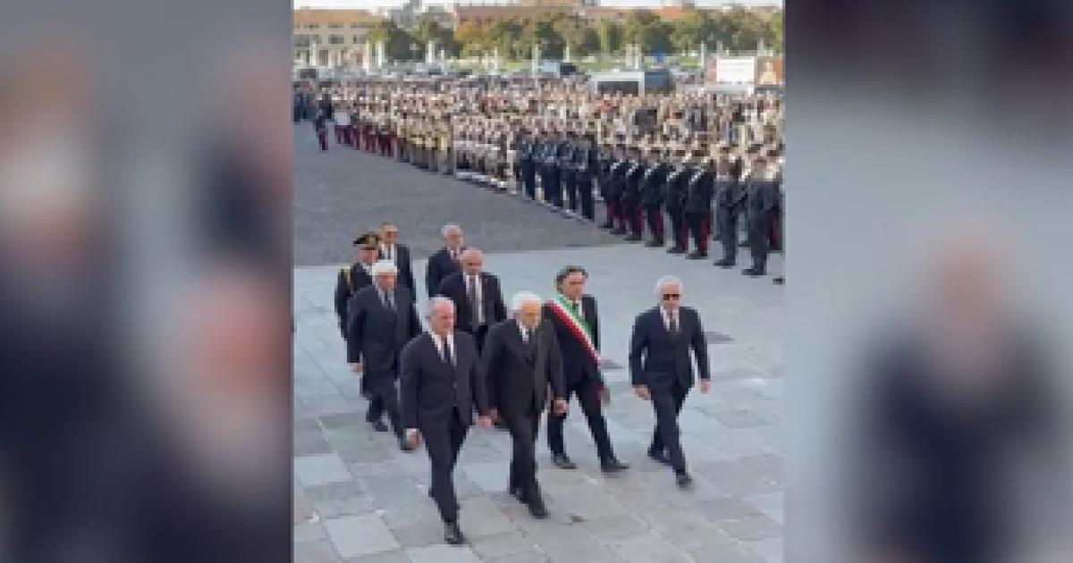 Poi l'ingresso nella basilica di S. Giustina, a Padova, delle bare avvolte nel Tricolore